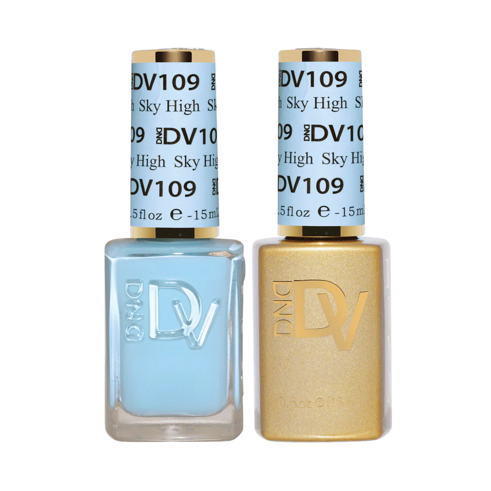Sky High DIVA #109 (bright sky blue) — Reach for your dreams and pointe your ballet flats towards the sky, swinging towards the clouds with this bright sky-blue pastel.Introducing the DIVA DND Duo Collection - where innovation meets style. Enjoy up to 3 weeks of flawless wear with no chipping or peeling, and a quick 10-15 minute soak-off time. With 290 mesmerizing shades to choose from, application is a breeze, leaving your nails feeling sleek, stunning, and unbeatable durability. Enhance your nail game with DND DUO - Diva Collection!
