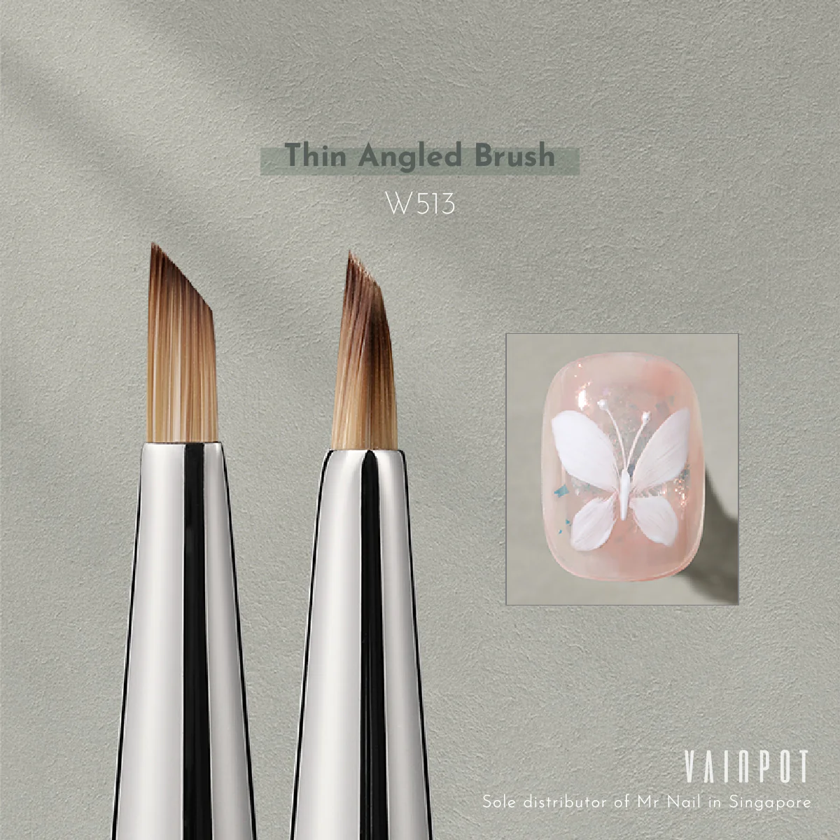 W512 Wide Angled Brush: Angled soft bristles for French tips, gradients, wave patterns, marble effects, and floral designs.