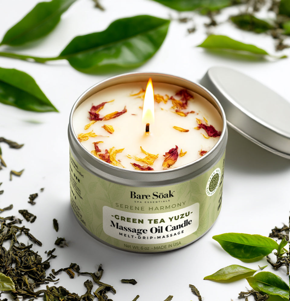 Bare Soak 6oz Massage Oil Candle - Green Tea